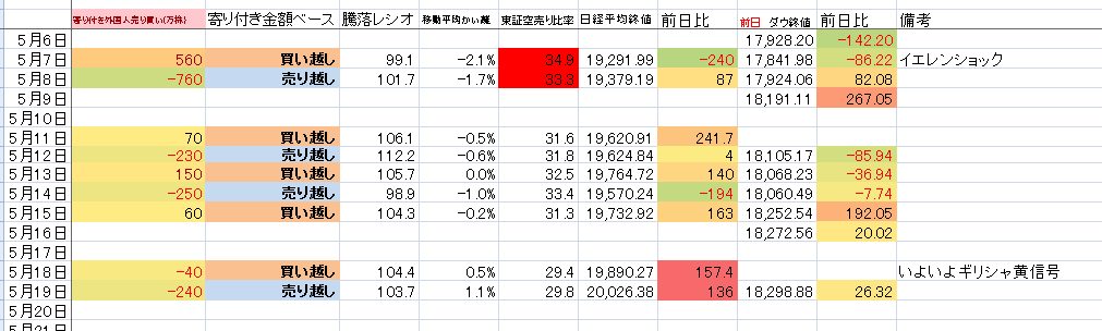 2015/05/19 - たか○さんの株式ブログ。タイトル:「データ更新」 本文:更新!特記事項 なし。少しギリシャが気になるけどまだ大丈夫