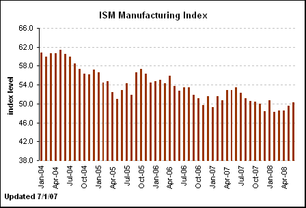 2008/07/02 - kuma_kuroiwaさんの株式ブログ。タイトル:「6月米ISM製造業景況感指数、5ヵ月ぶり50上回る」 本文: