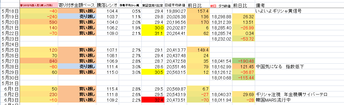 2015/06/04 - たか○さんの株式ブログ。タイトル:「更新」 本文:空売り比率上がったね。あとはとくに特記事項なし。ダウあがっとるね