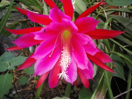 写真は庭のサボテンの花(左)とアストロメリア(右)です