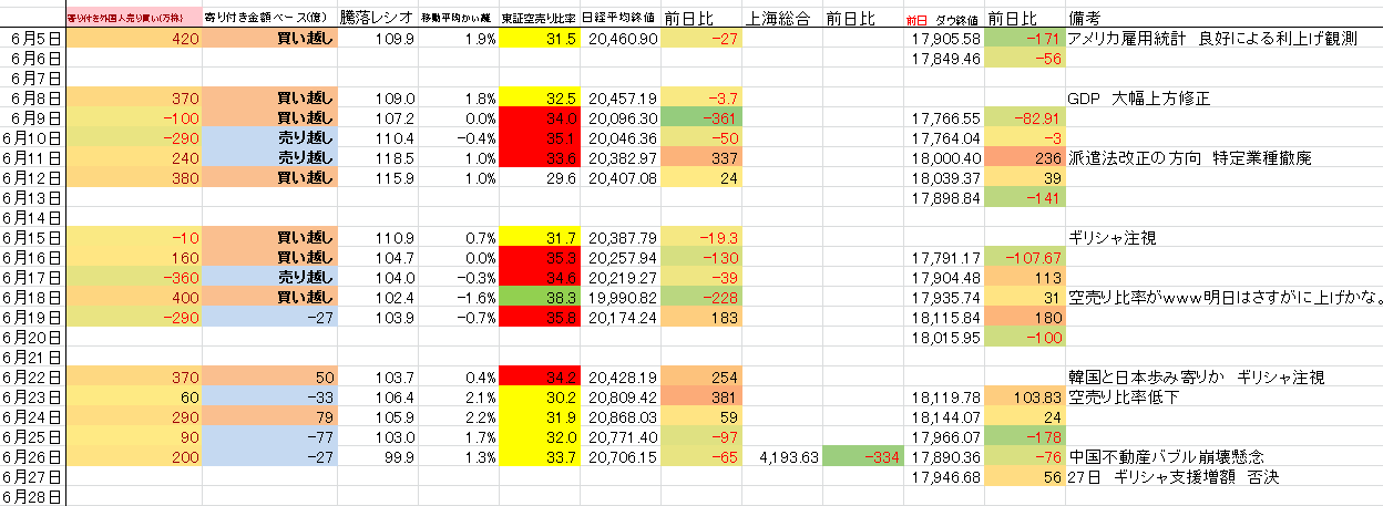 2015/06/29 - たか○さんの株式ブログ。タイトル:「ギリシャ、中国・・・・織り込み済み?」 本文:結構強気の意見が多い気がする。落ちてもほどほどかな。暴落はチャンスだけど、悪材料→踏ん張るとなると難しい相場になりそう。