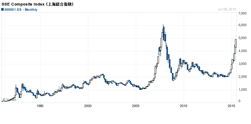 2015年6月12日の5,166.35人民元から2015年7月8日で3,507.192人民元(▲32.1%)に暴落。