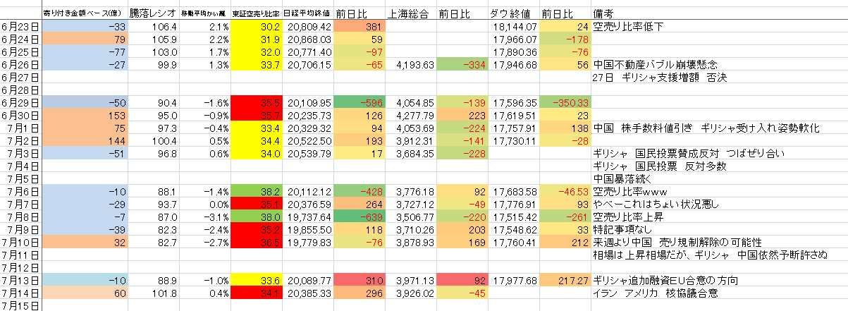 2015/07/14 - たか○さんの株式ブログ。タイトル:「更新」 本文:更新です。 特記事項はありません