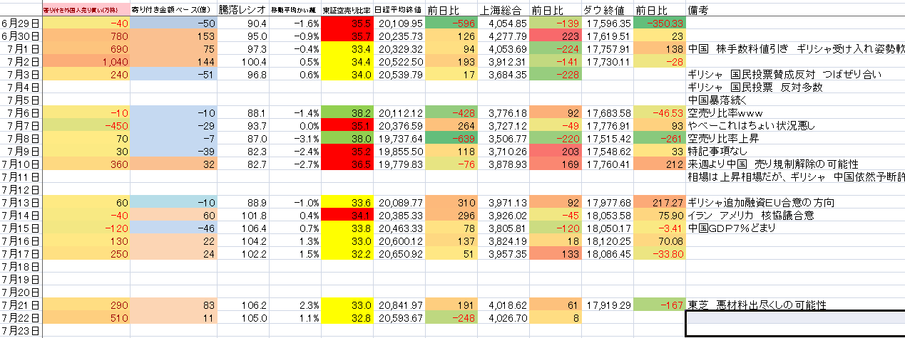2015/07/22 - たか○さんの株式ブログ。タイトル:「データ更新」 本文:特記事項 なし。仕掛けが入る銘柄は入ってるみたいね。