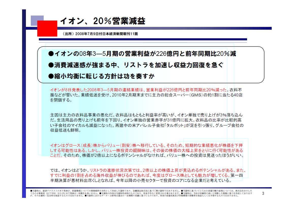 ●イオンの08年3―5月期の営業利益が226億円と前年同期比20%減
