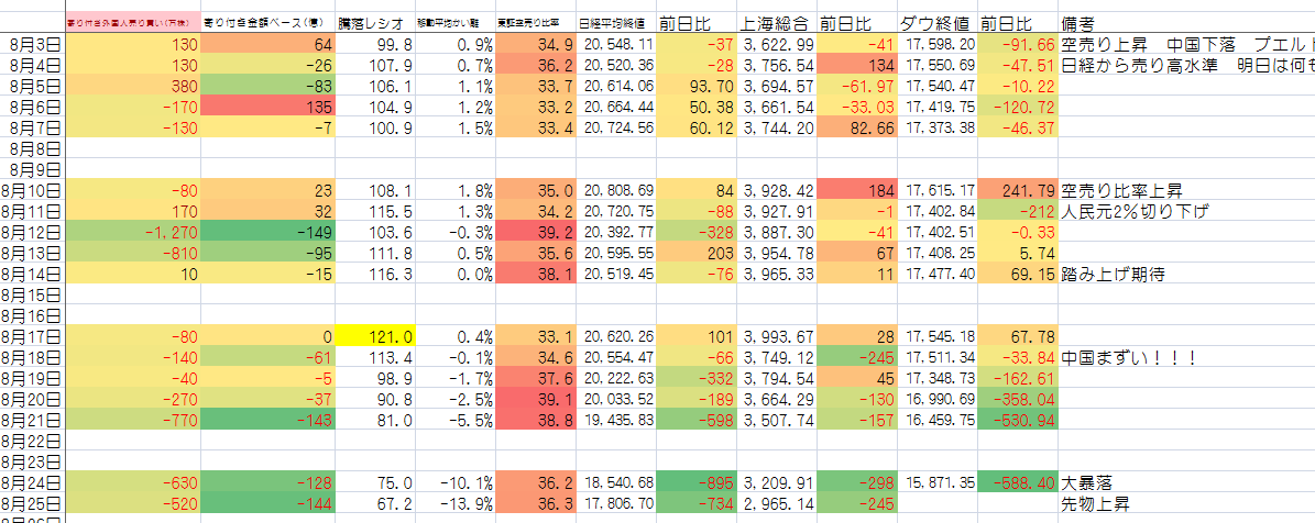 2015/08/26 - たか○さんの株式ブログ。タイトル:「先物上昇 わからんね」 本文:難しい相場。こういうときはすこーし 腰が引けた状態でいいや。短期中心で行きます。
