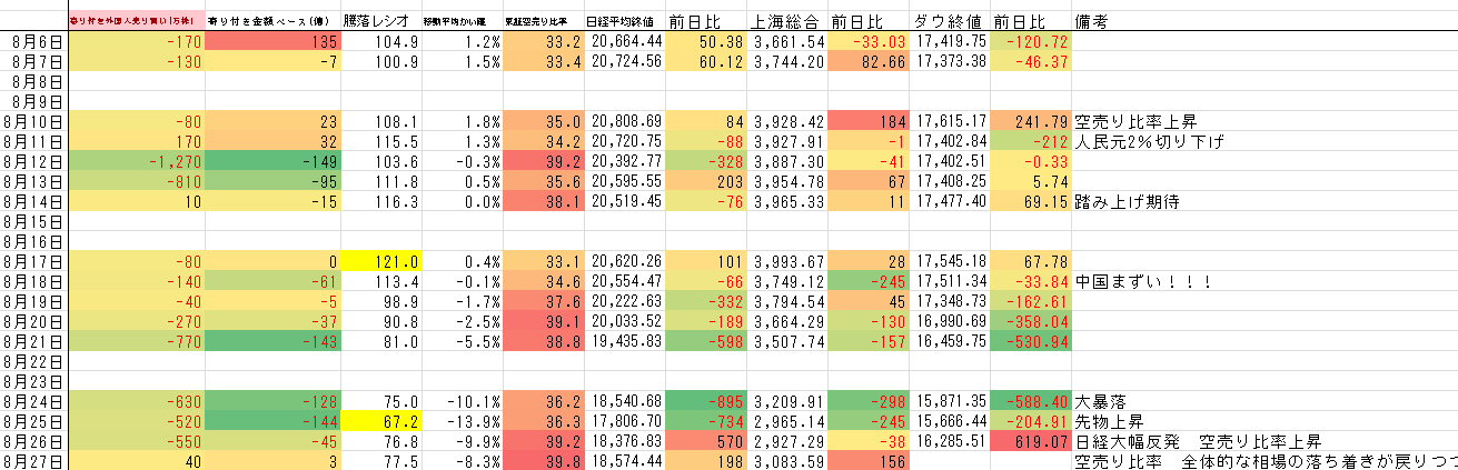 2015/08/27 - たか○さんの株式ブログ。タイトル:「なんだこりゃーwww」 本文:空売り比率39.8ここまで来ると 気持ち悪いwww