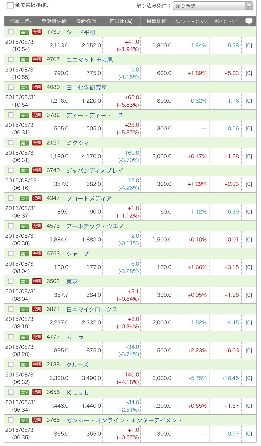 2015/08/31 - たか○さんの株式ブログ。タイトル:「売り予想上位五位 すべてアプリ関連」 本文:これは・・・・市場の成熟。ゲーム関連 特に携帯アプリの会社が伸び悩んどる。これ以上の市場の拡大は 期待薄か。そろそろゲーム株もおしまいか。コロプラが 一部上場 したあたりからだねこれ。あるいみ