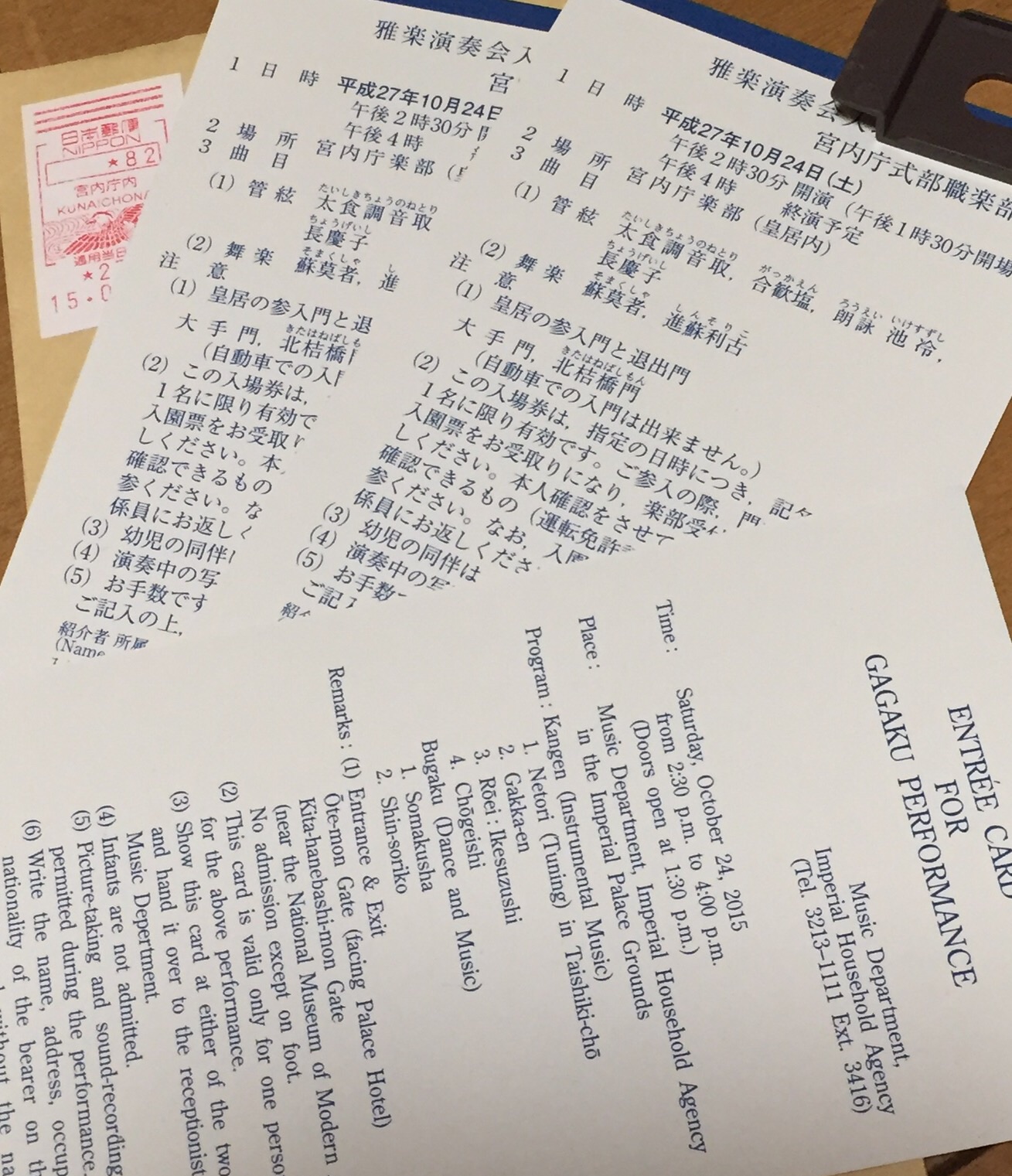 ボクの後ろの席に座った二人が雅楽をやってる人はたくさんいるんですよというようなことを話してました。