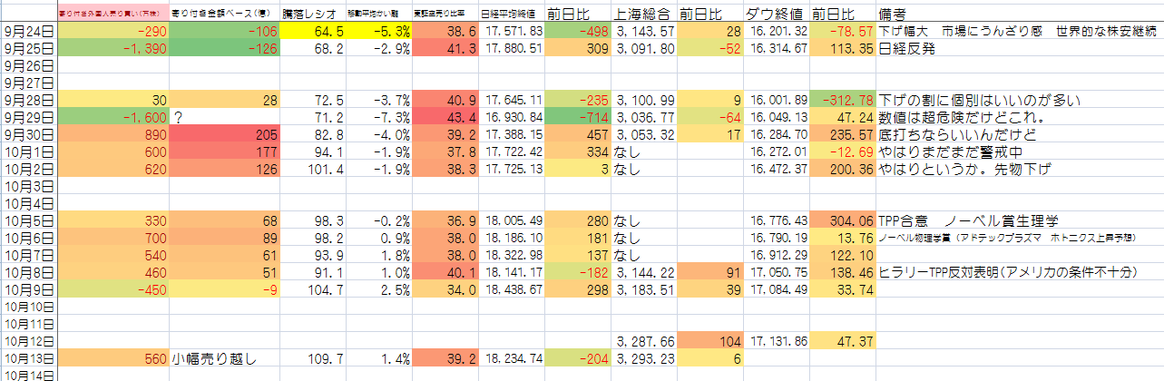 2015/10/13 - たか○さんの株式ブログ。タイトル:「ここ数日はひたすら我慢」 本文:日経が気持ちよくない動きだったし。しかし、持ち株に関しては 落ちるどころかあがっとる。なにをひたすら我慢したかというと 追加することを我慢した。強く押せば買い