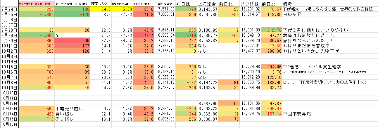 2015/10/15 - たか○さんの株式ブログ。タイトル:「うーむ」 本文:明日は どうなるでしょうかね。何とも言えない数値の組み合わせ。上なのか下なのか。多分 少し押して踏ん張って 午後少し上げるとかだといいんですが。今夜のNY次第でしょうか。