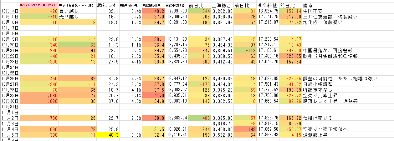 数値的には過熱気味ですが、 まあ株というのは行き過ぎるものですし 押し下げる理由があれば ドカンと下がりうるけど強気は続くという感じでしょうか。新興の決算がこれから出て来るんかな。大手と違って為替の恩恵を受けにくいとことかは決して決算は良くないかもしれない。恩恵を受けているところの決算がいいから普通だと悪く見える。なんて感じで見ていますが。