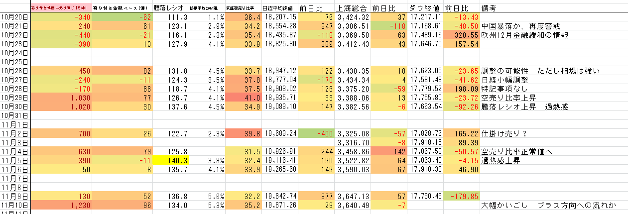 2015/11/10 - たか○さんの株式ブログ。タイトル:「数値更新」 本文:これ、WWWWW相当強気だね。強気が強気を呼ぶ。こういう相場は理屈じゃないんだ。流れ、意欲。そしてこの過熱気味の数値を無視して大幅な寄り付き買い。まだまだ