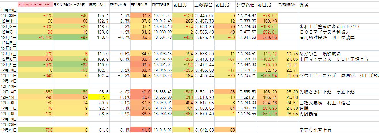2015/12/21 - たか○さんの株式ブログ。タイトル:「データ更新」 本文:これは危険な組み合わせ復活かな。寄り付き前大幅売り越し 空売り比率急上昇この二つの組み合わせは危険信号。しかし、意外にも 金額はさほど売られていない感じか。だとすれば
