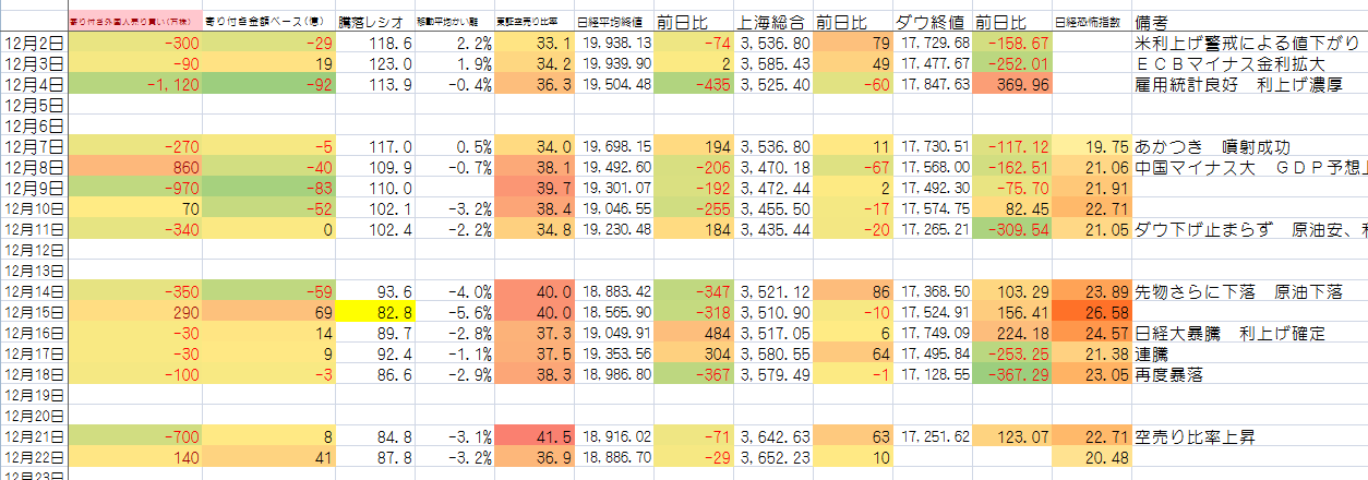 2015/12/22 - たか○さんの株式ブログ。タイトル:「数値更新」 本文:特記事項なしですが まあ強く押したら買いでもよさそうに見える。結構相場が安定しつつあるようにみえる。来週はまた違う気がするけど。
