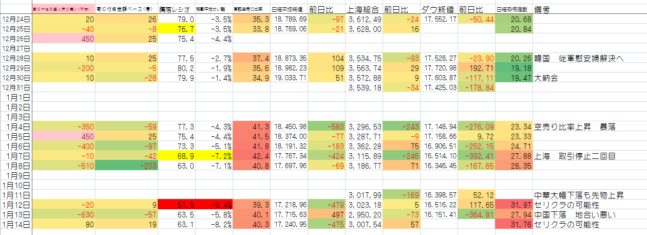 2016/01/14 - たか○さんの株式ブログ。タイトル:「数値更新」 本文:今日の数値はまずまずの組み合わせかな。そんなに変わらんけど 徐々に底値に近付いてる感じだ。まだ落ちる説もあるけど そろそろそういう輩を置いてきぼりにしようZE