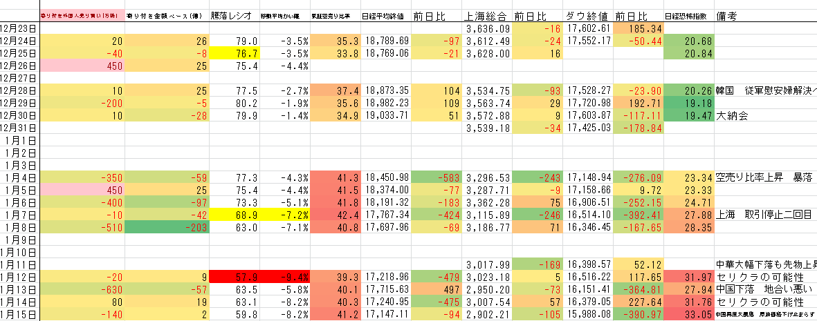 2016/01/16 - たか○さんの株式ブログ。タイトル:「アメリカの数値入れました。」 本文:月曜は 苦行ですね 苦行。