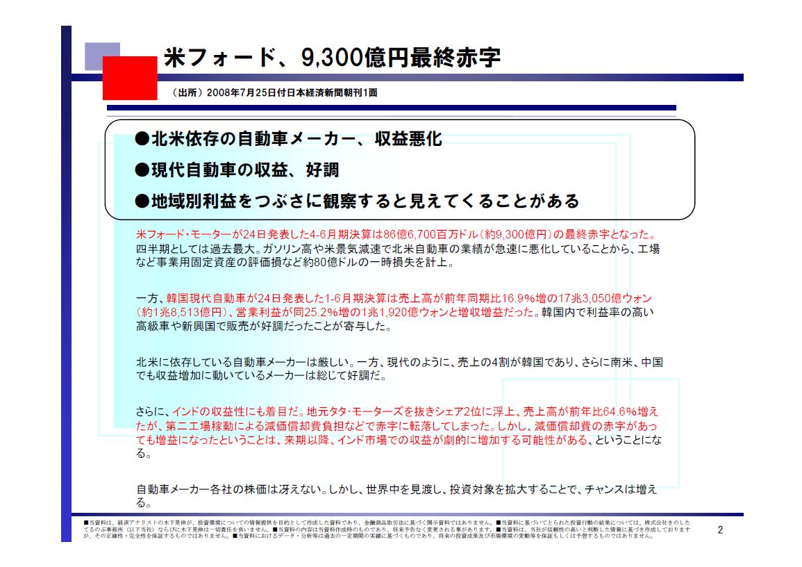 2008/07/25 - 木下 晃伸さんの株式ブログ。タイトル:「【投資脳のつくり方】米フォード、9,300億円最終赤字」 本文:みなさま、いかがお過ごしでしょうか。 経済アナリスト、木下 晃伸(きのした てるのぶ)です。 ●北海道 いま、北海道に来ています。
