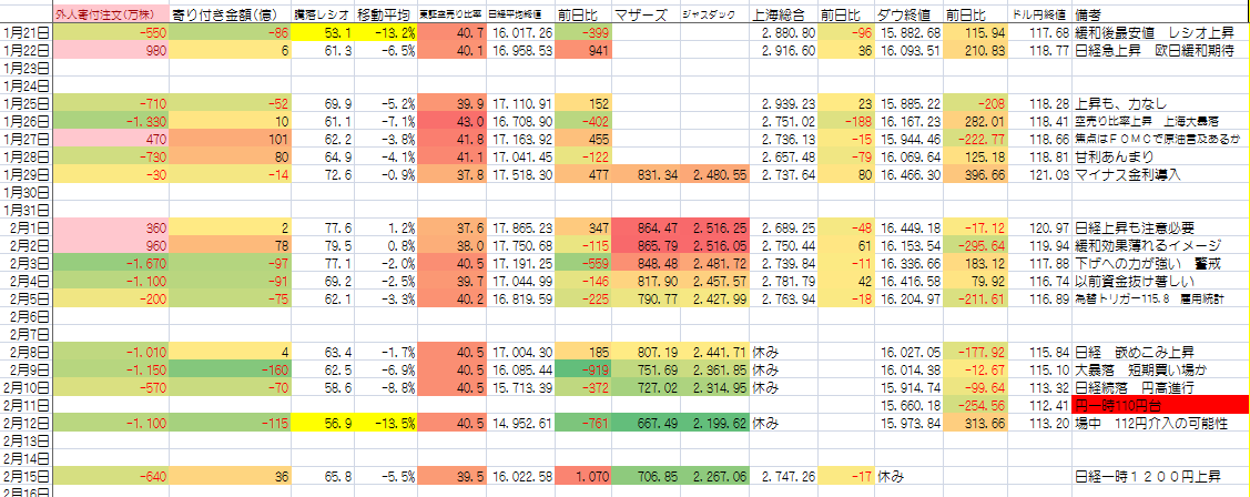 2016/02/15 - たか○さんの株式ブログ。タイトル:「データ集計」 本文:普通に行くと明日は GDからの陽線の位置に見える。まだ上値に余裕があるようにもみえる。ただ今日