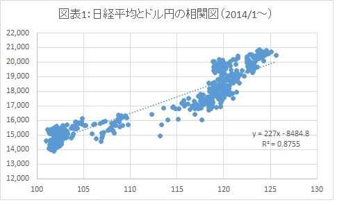 画像にある図表は日経平均とドル円の値をそれぞれ取ったものだが、
