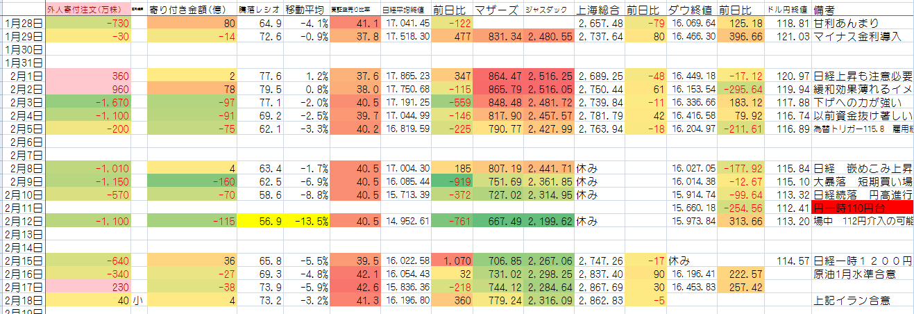 2016/02/18 - たか○さんの株式ブログ。タイトル:「数値更新」 本文:これは 迷いの相場だ。だからわかりにくいし 難しい。一連の売り姿勢から 脱するかもしれないし チャート通りに一回