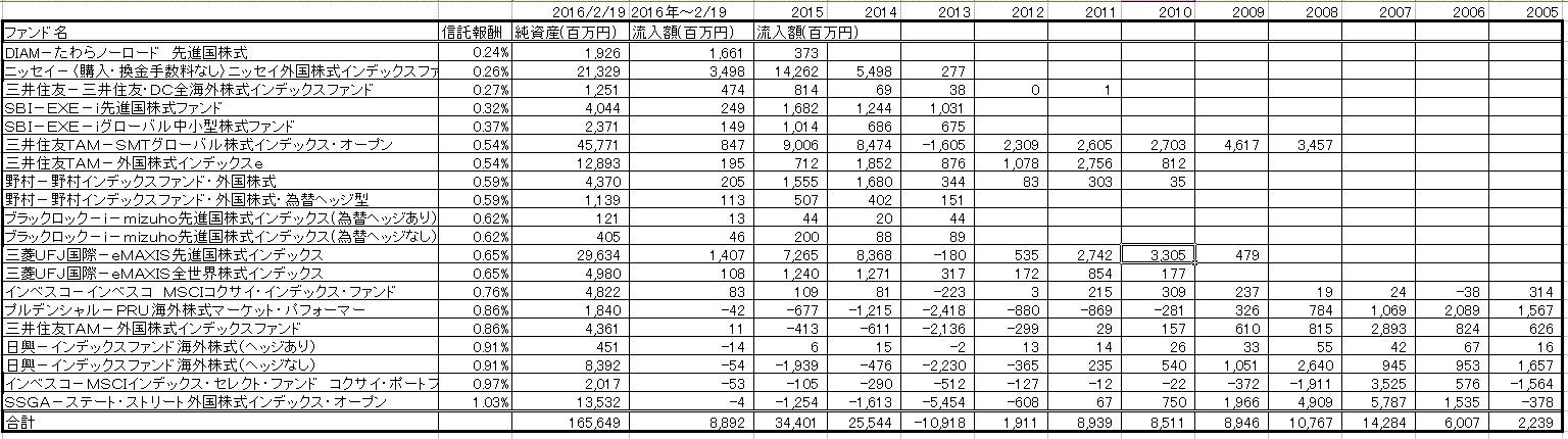 ・2005年から2015年までの、それぞれの年のネットの資金流出入額