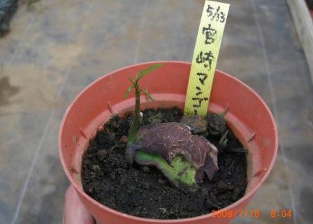 2008/07/28 - 株育男さんの株式ブログ。タイトル:「蒔かぬ種は生えぬ!(小さな芽を育てるの巻)」 本文:写真左と写真真ん中は、同じ日に撮影したマンゴーの芽です。 蒔いた日が違います。 小さいほうが蒔いてから67日後、大きいほうが21日後です。 逆じゃない? なぜこうなったかって?