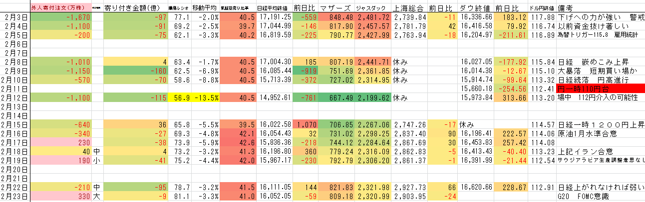 2016/02/23 - たか○さんの株式ブログ。タイトル:「読めないし読む必要なし」 本文:ただ吹き上げたりしたら売りでいいかもね。基本的には下向きなんだけれど、朝一の相場の動きというか。下げるべきとこで下げず