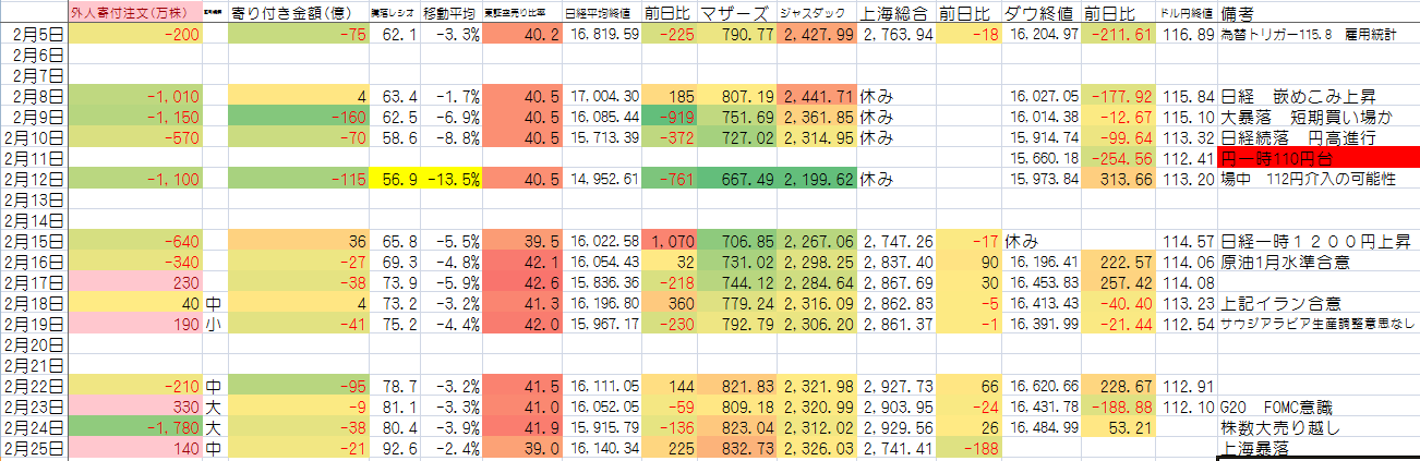 2016/02/25 - たか○さんの株式ブログ。タイトル:「データ集計」 本文:なんかつかみどころがない昨日の大幅な売り越しも 今日はまったく 関係なし。一つ気になるのが今日は大きく 空売り比率が解消してる。今日の上げはやはり