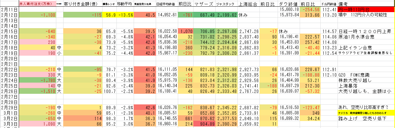 2016/03/03 - たか○さんの株式ブログ。タイトル:「データ集計」 本文:現状はかなり ↑↑ですね(汗)想定以上。というか下がると思ってたし。しかし、逆らいすぎると 引き返せなくなるし 仕方なく一銘柄仕込み。明日の状況見ないとあれだけど まだまだ