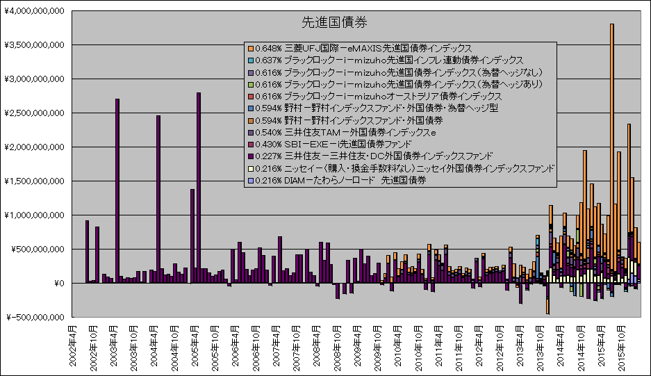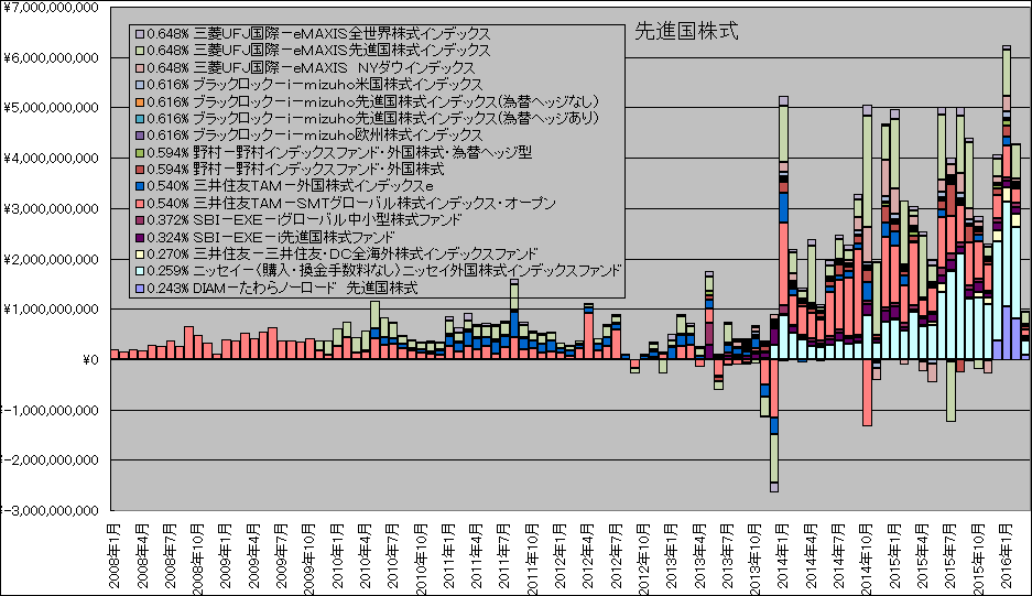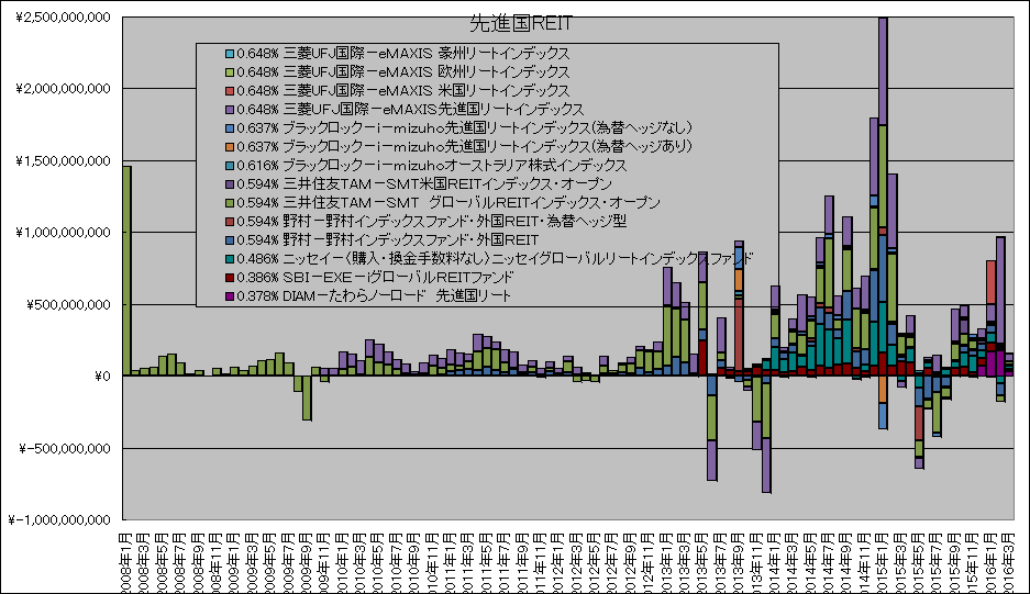 2016/03/08 - miyakenさんの株式ブログ。タイトル:「indexfundの資金流出入額(3) ~20160304」 本文:インデックスファンドの月毎の資金流出入額を、まとめました。先進国株式先進国債券先進国REIT