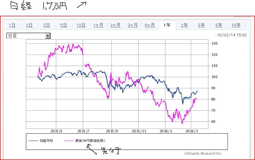 怪しいと思っていたWTI原油と日経平均のチャートを重ねて見ると、