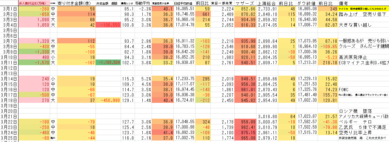 2016/03/25 - たか○さんの株式ブログ。タイトル:「データ更新」 本文:気になるところといえば やはり以前売りこされ続けている点。どこが支えているのかは一目瞭然。大丈夫なのか日本株。しかし、それと株価の変動は全く別次元。買いざさえあがあるのならそれを