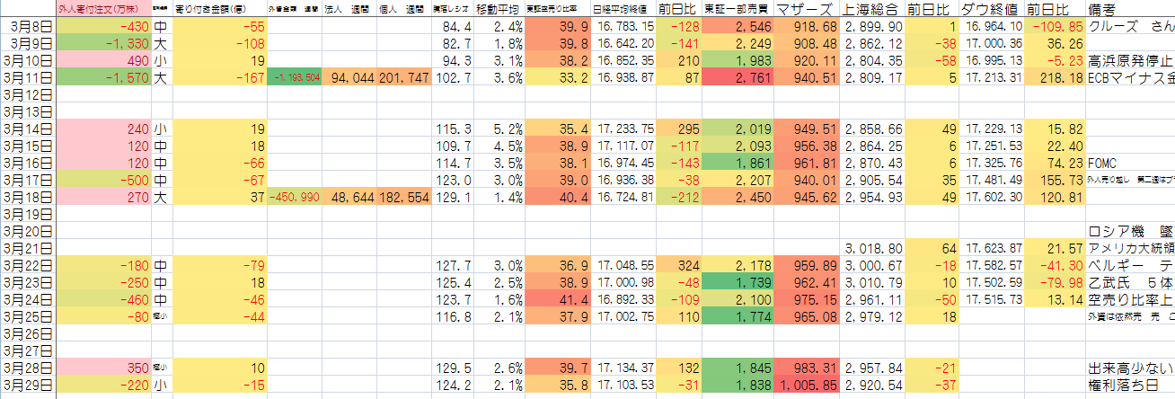 2016/03/29 - たか○さんの株式ブログ。タイトル:「あれ、こうしんわすれ」 本文:更新特記事項なしだけれど 思ったより空売り買い戻し入ってた?まあ相場は 金曜まではある意味無風でしょ。無風。