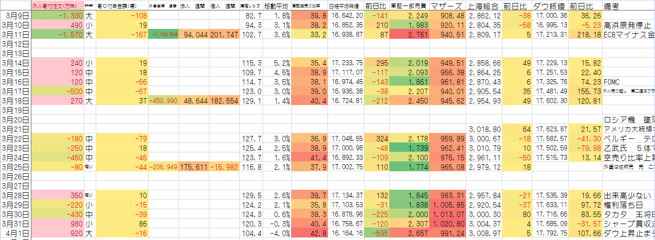 2016/04/02 - たか○さんの株式ブログ。タイトル:「データ集計」 本文:特記すべき事項としては 異常に上がった空売り比率。この日経の下落、空売り比率の上昇、出来高の上昇。これは