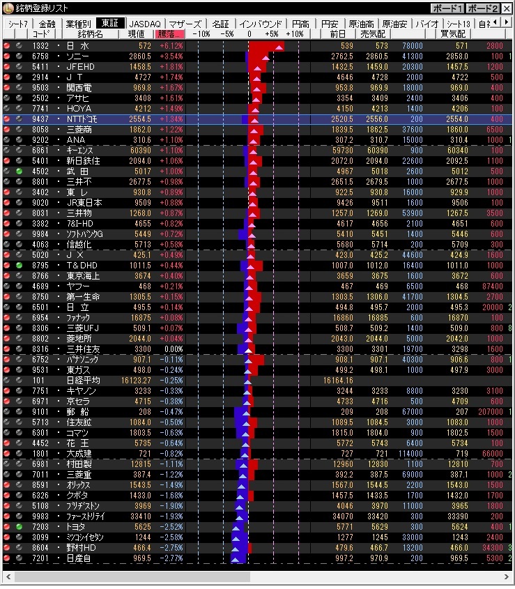 業種別にはどうかということだが、原油安が続いているものの昨日はそれほど下げなかった資源関連株が下げやすいか。。。