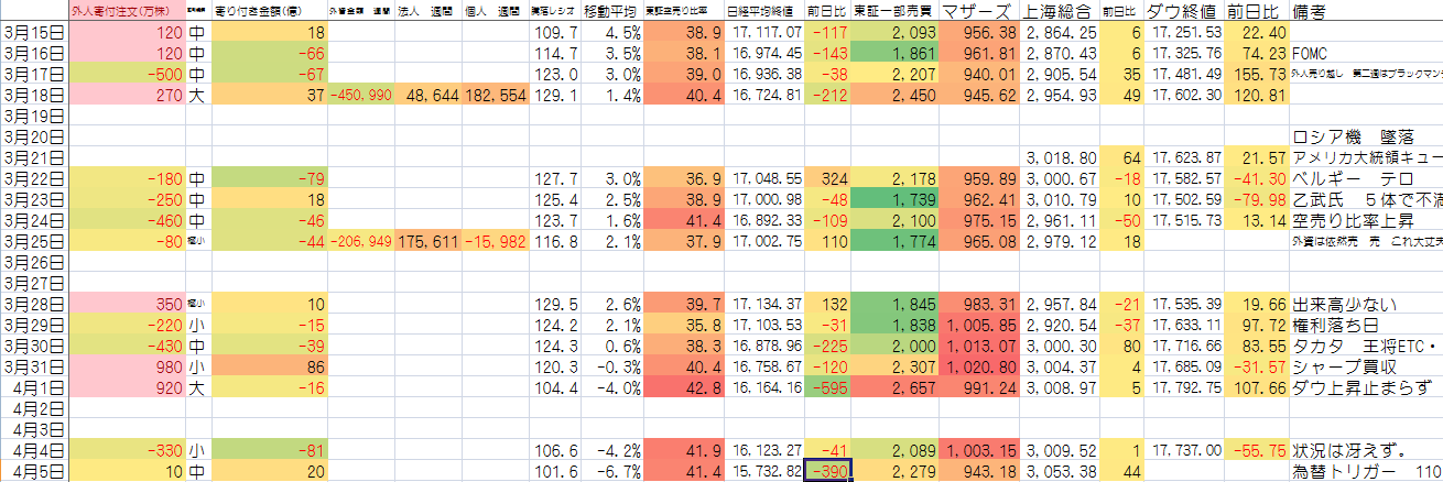 2016/04/05 - たか○さんの株式ブログ。タイトル:「数値更新」 本文:昨日との状況の違いは 意識が為替110円にあること。ここを割るとひどいが 割らないのではという強い岩盤が存在する。よって明日の注目は この岩盤が強いのか弱いのか。これに尽きますね。日経平均自体は まあ