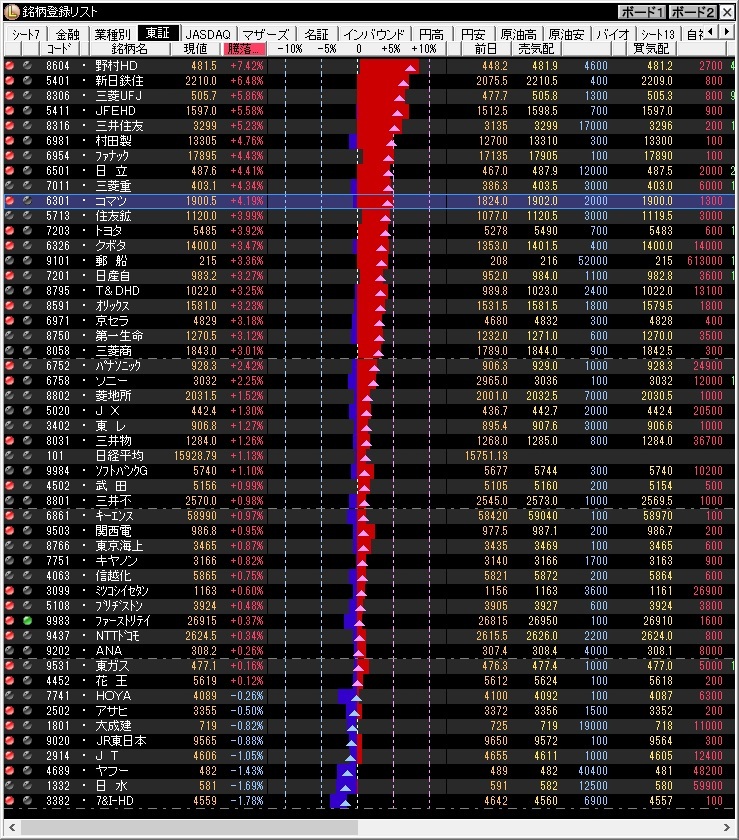 *別添え画像は前日の主あ要銘柄の株価変動を示す。