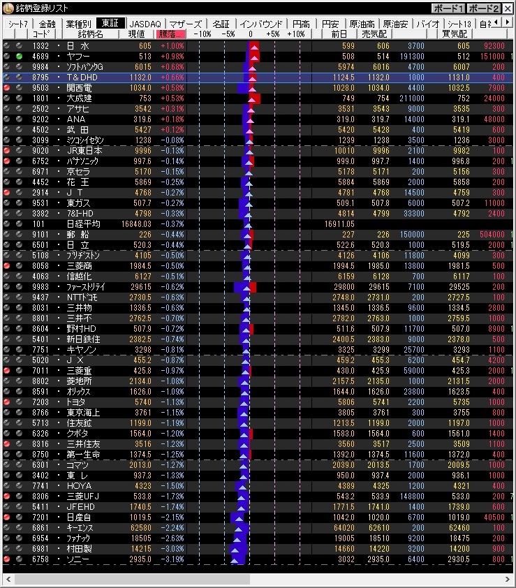 *別添え画像は前日の主要銘柄の株価変動を示す。