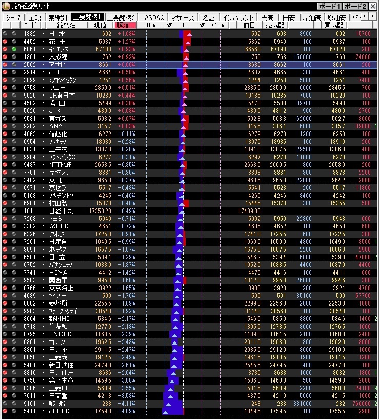 *別添え画像は前日の主要銘柄の株価変動を示す。