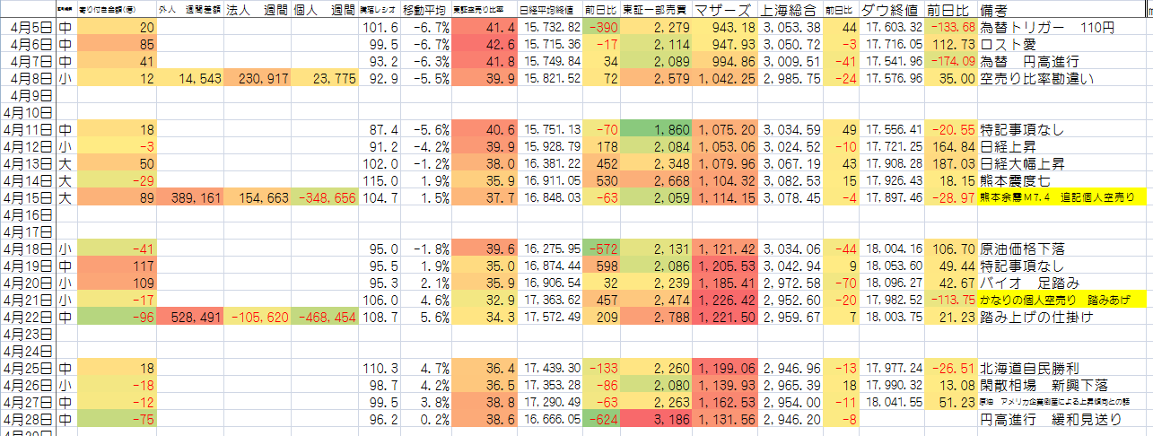 2016/04/28 - たか○さんの株式ブログ。タイトル:「これが緩和の副作用か。」 本文:今後はこういうことの連続なんだろうね。今回緩和が現状維持でこれだ。緩和ってのはこういうもんなんだよね。先日 地方選があったけどやっぱ見立て通り