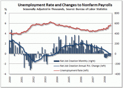 米労働省が1日発表した7月の雇用統計(季節調整済み)によると、失業率(軍人を除く)は前月比0.2ポイント上昇し、5.7%に悪化した。非農業部門の雇用者数も前月に比べ5万1000人減少(市場予測平均7万5000人減)し、7カ月連続でマイナスとなった。長引く景気低迷や企業のリストラ加速などから、特に若年層で雇用情勢の悪化が目立っている。