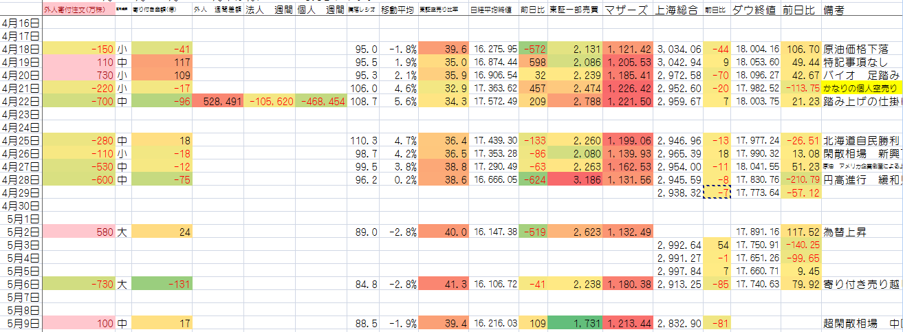 2016/05/09 - たか○さんの株式ブログ。タイトル:「データ集計」 本文:みなビビッてるね。 パナマ文書すげー日経の売買代金が低い。外資も様子見みたいな寄付き。さて。明日が問題ですね。べつに企業の名前が書いてあること自体は怖くない。政治家がやばい。