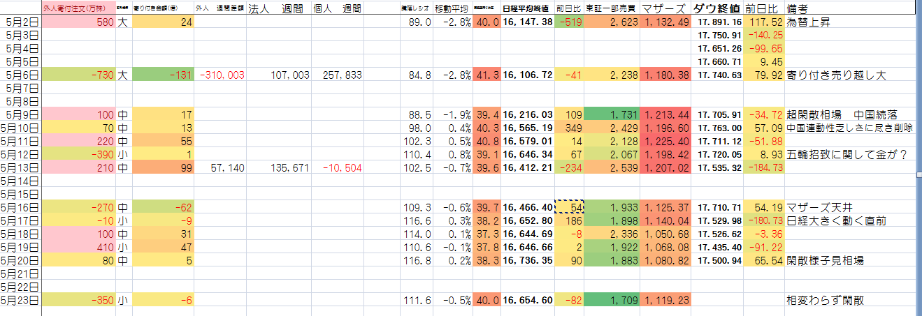 2016/05/23 - たか○さんの株式ブログ。タイトル:「日記更新しないかも。3日間」 本文:会社の一大イベント。トレードしてる暇なし。超がつく忙しさ。予想は当たってかえてりゃもうかったろうけれども仕方なし。それより出来高低すぎ。不気味な部分も。