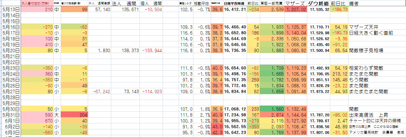 2016/06/04 - たか○さんの株式ブログ。タイトル:「ふーむ。とりあえず データ」 本文:これ見ると先週くらいから 相場自体が 様子見されていた感はありますね。出来高の激減。セルインメイによる 様子見かと思っていましたが。