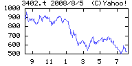 2008/08/06 - トロンボーンさんの株式ブログ。タイトル:「東レ、底値での下方修正に株価は・・・」 本文:底値の500付近まで急落するも機関投資家が買い急反発。 人気の高さを伺える。 ↑日中足 ↑日足(1年)