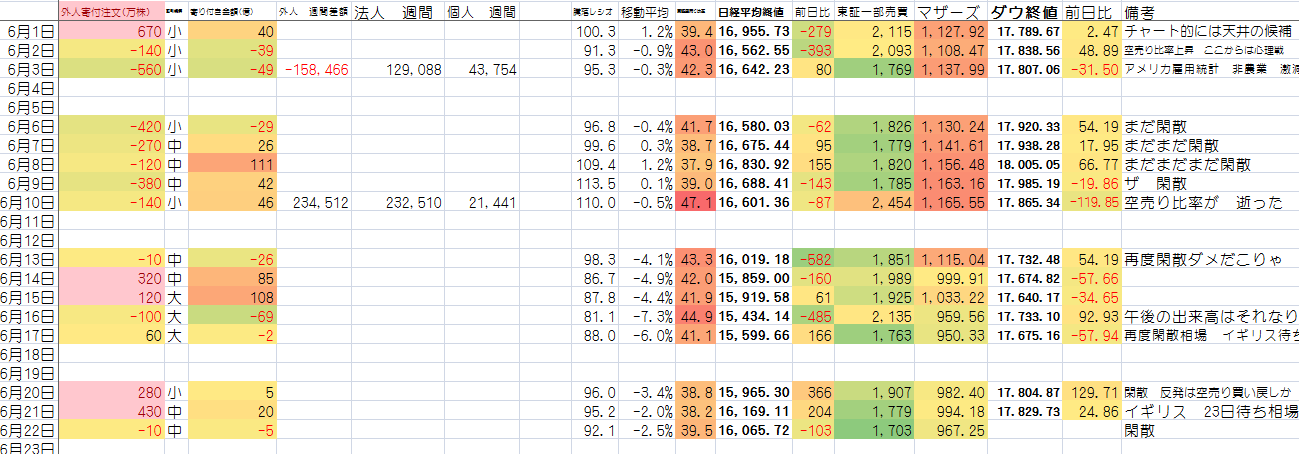 2016/06/22 - たか○さんの株式ブログ。タイトル:「更新」 本文:特記事項なし こんな相場は 見てるだけー。そろそろ 仕込み水準なのか。あるいは違うのか。すげー寿命の短い相場が 行ったり来たりしてる。
