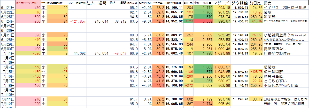 2016/07/12 - たか○さんの株式ブログ。タイトル:「データ集計」 本文:力強くなってきたね。何より 任天堂が半端ないね。NHKで 任天堂のゲームが紹介されたから 一瞬天井打つかと思ったけどそのまま上昇。 少し乗っかりましたよ。データも