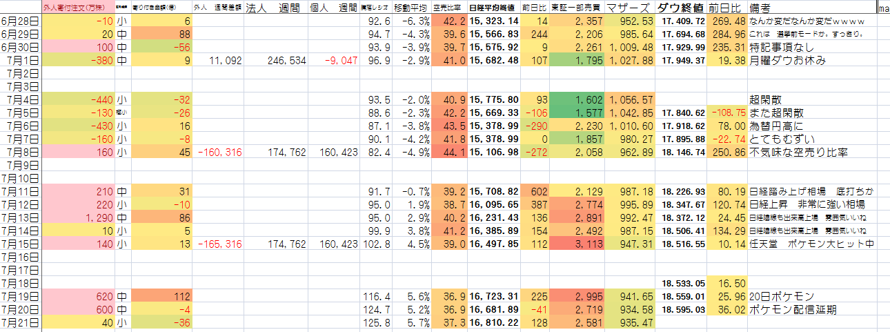 2016/07/21 - たか○さんの株式ブログ。タイトル:「うーむ」 本文:やっぱオーバーシュートに力がないなあ。売りが入ってないんだよね。空売りも時には 理不尽な上昇の原動力。その空売りがあまり入らなかった。ここは入ってもいい場面だけどねえ。なんにせよ 明日からは