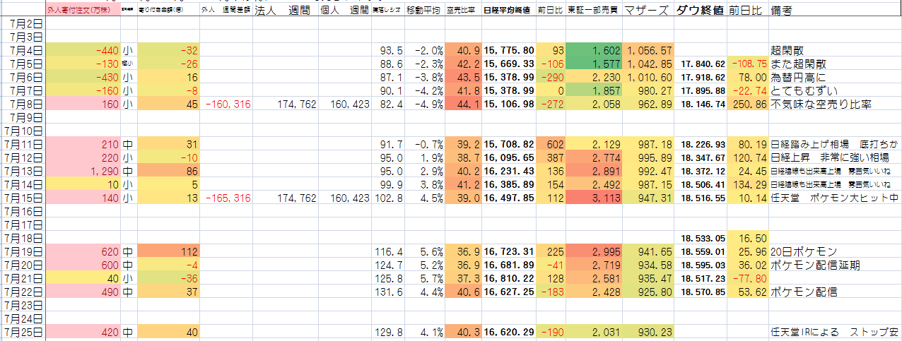 2016/07/25 - たか○さんの株式ブログ。タイトル:「ふむ。今日は当たり障りない感じだね。」 本文:ポケモン関連がズタズタに見えるけど。これしかし、単純にそうとも言えないね。なぜなら これまで見向きもされなかったような 位置ゲーム関連や 地図データ関連が買われてたしね。単純に